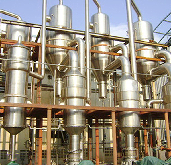 降膜蒸發(fā)器又稱降膜濃縮器,屬于降膜式蒸發(fā)濃縮設(shè)備。降膜蒸發(fā)器特別適用于含活性菌發(fā)酵液、熱敏性食品的蒸發(fā)濃縮,也可適用于葡萄糖、木糖、淀粉糖、低聚糖、鮮奶、麥芽糊精等水溶液的低溫連續(xù)蒸發(fā)濃縮。